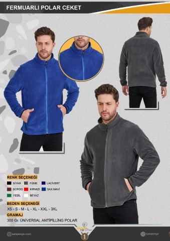 FERMUARLI POLAR CEKET RENK SEÇENEĞİ SİYAH FÜME LACİVERT BORDO KIRMIZI SAX MAVİ YEŞİL BEYAZ BEDEN SEÇENEĞİ XS - S - M - L - XL - XXL - 3XL GRAMAJ 300 Gr. ÜNİVERSAL ANTİPİLLİNG POLAR 1