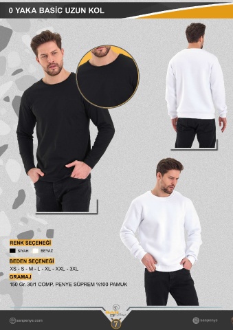 0 YAKA BASİC UZUN KOL RENK SEÇENEĞİ SİYAH BEYAZ BEDEN SEÇENEĞİ XS - S - M - L - XL - XXL - 3XL GRAMAJ 150 Gr. 30/1 COMP. PENYE SÜPREM %100 PAMUK 7