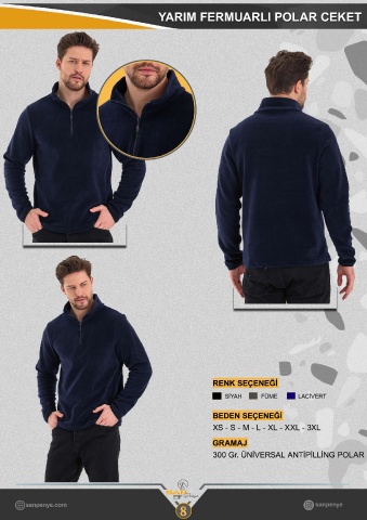 YARIM FERMUARLI POLAR CEKET RENK SEÇENEĞİ SİYAH FÜME LACİVERT BEDEN SEÇENEĞİ XS - S - M - L - XL - XXL - 3XL GRAMAJ 300 Gr. ÜNİVERSAL ANTİPİLLİNG POLAR 8